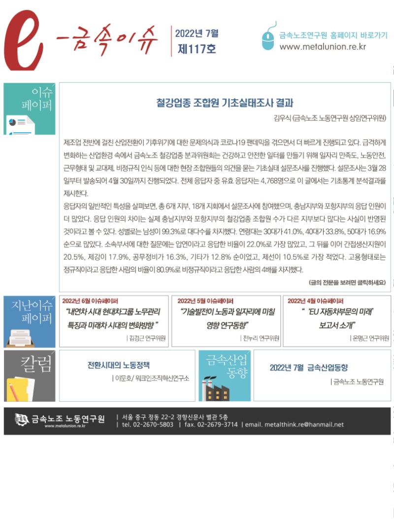 e-금속이슈 117호 "철강업종 조합원 기초실태조사 결과"